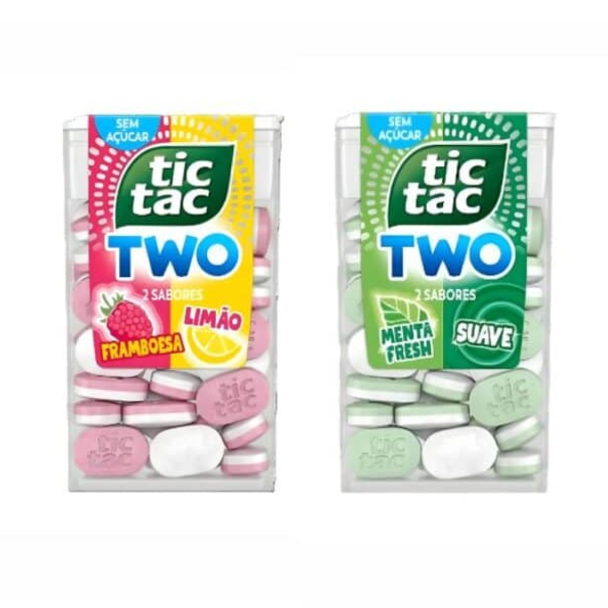 O novo Tic Tac Two são pastilhas sem açúcar que combina dois sabores, para uma refrescância duradoura e um toque de frescor a qualquer hora do dia. Diferente das versões tradicionais, esta linha apresenta pastilhas bicolores e maiores, compostas por duas camadas de sabores que se complementam perfeitamente.