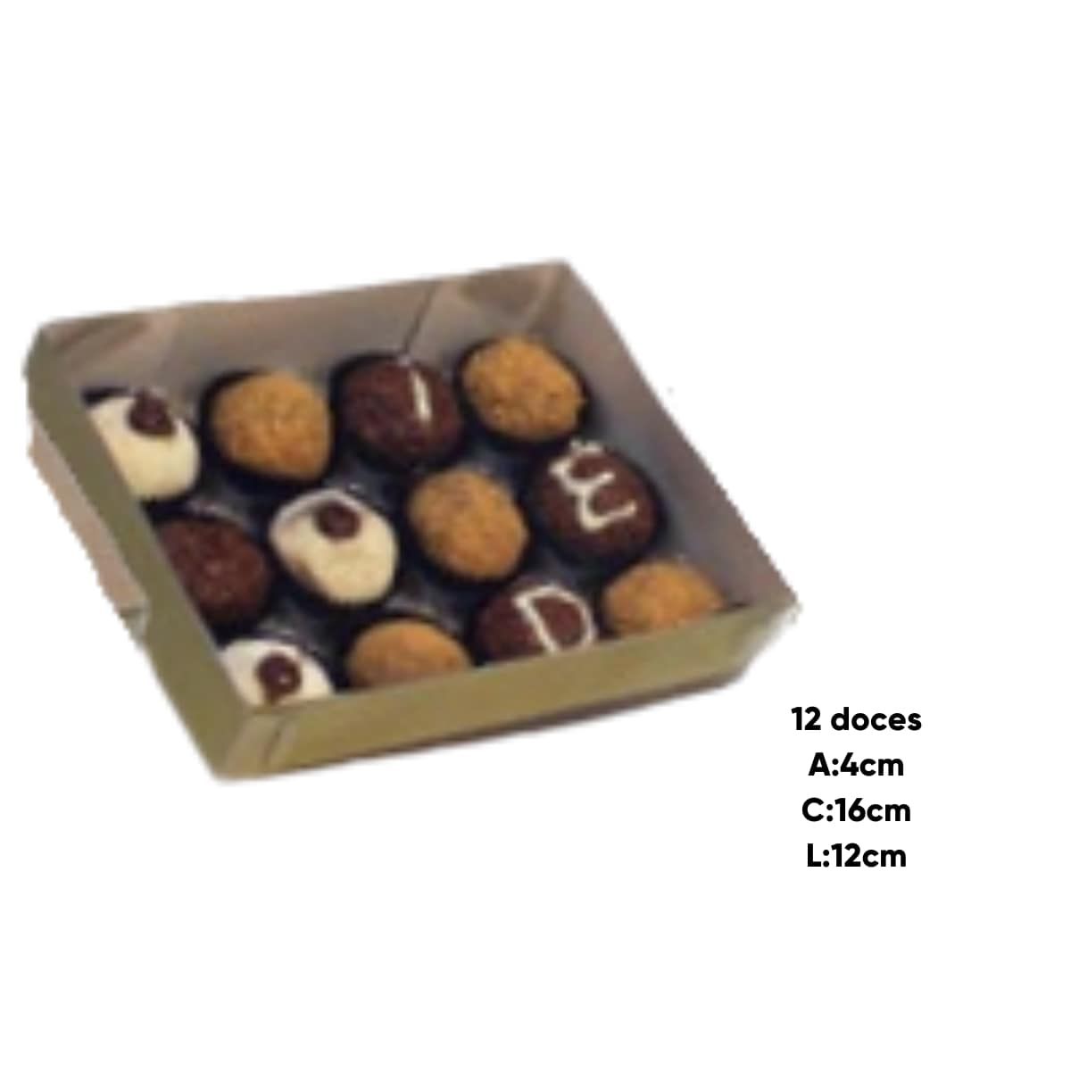 Dimensões: 12 Doces: Altura: 4cm Comprimento: 16cm Largura: 12cm