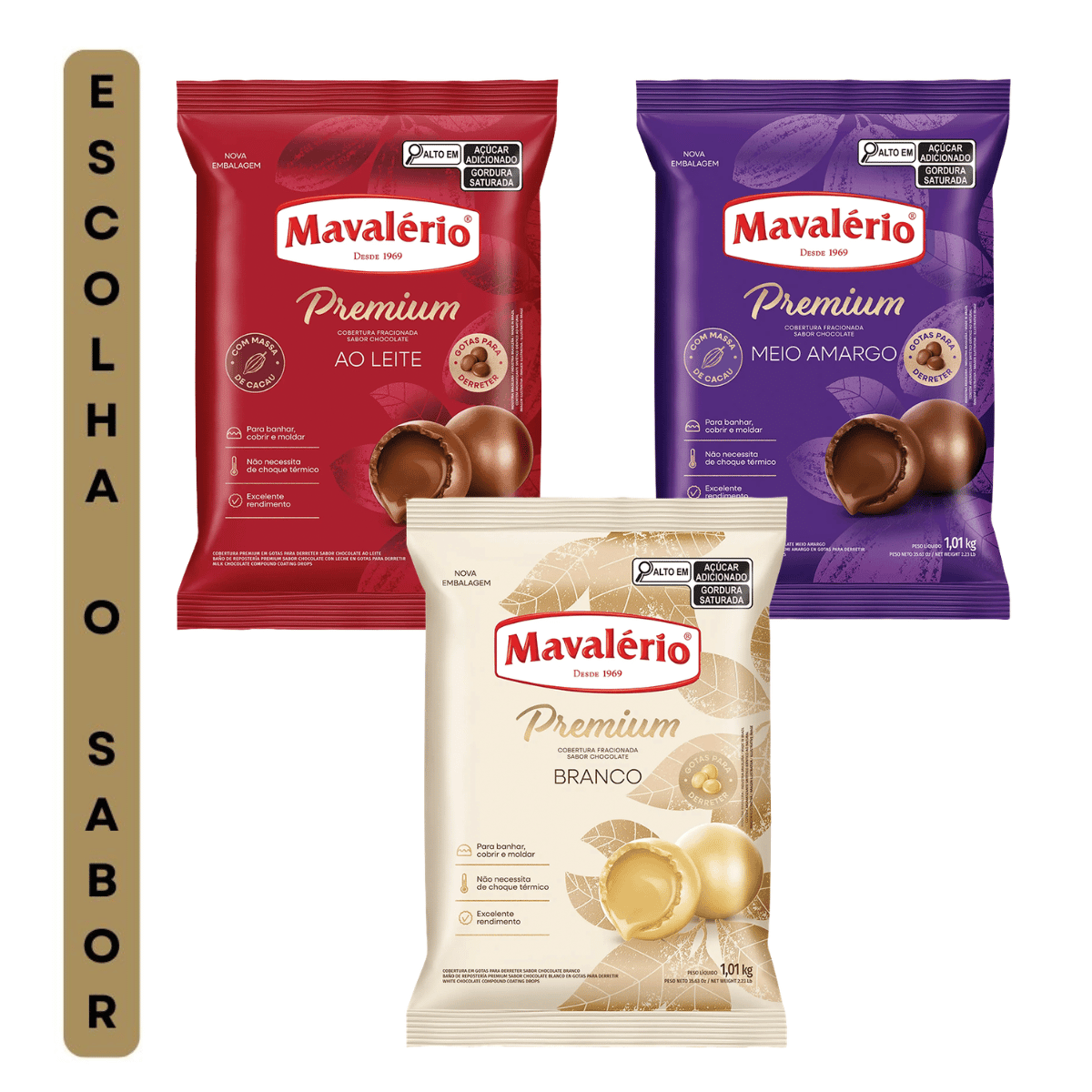 A Cobertura Mavalério em Gotas (1,010kg) é a escolha perfeita para quem busca sabor e praticidade na confeitaria. Ideal para derreter, cobrir, moldar e decorar diversas receitas, garantindo um acabamento irresistível. Disponível em diferentes sabores para deixar seus doces ainda mais deliciosos. Escolha o seu favorito e transforme suas criações!
