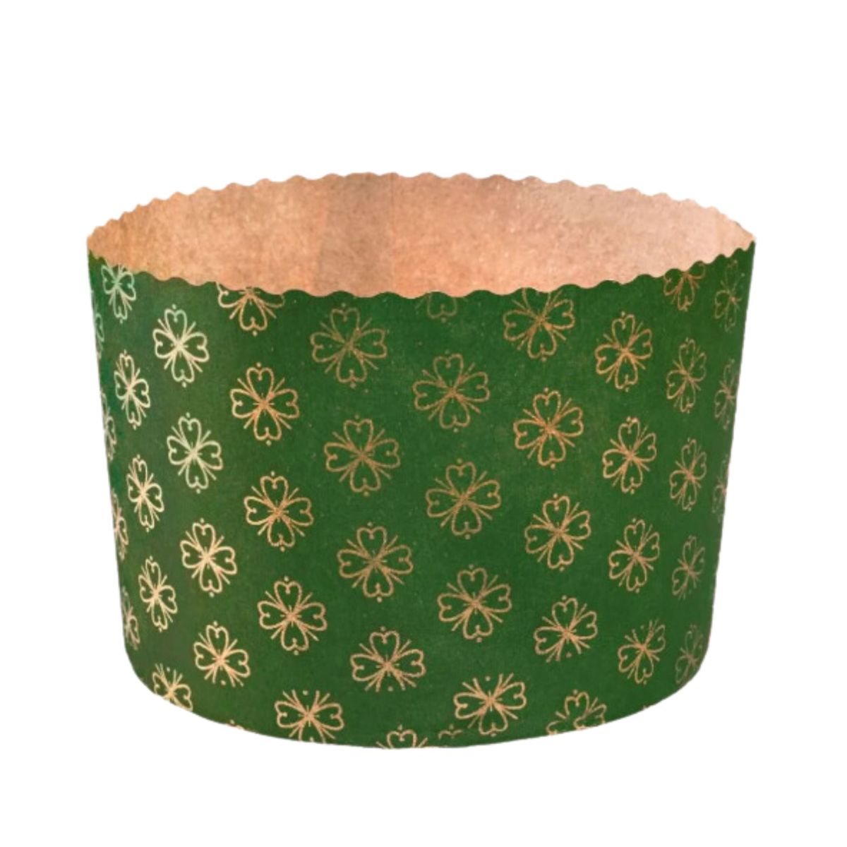 Cor verde decorativa, que valoriza a apresentação do panetone.