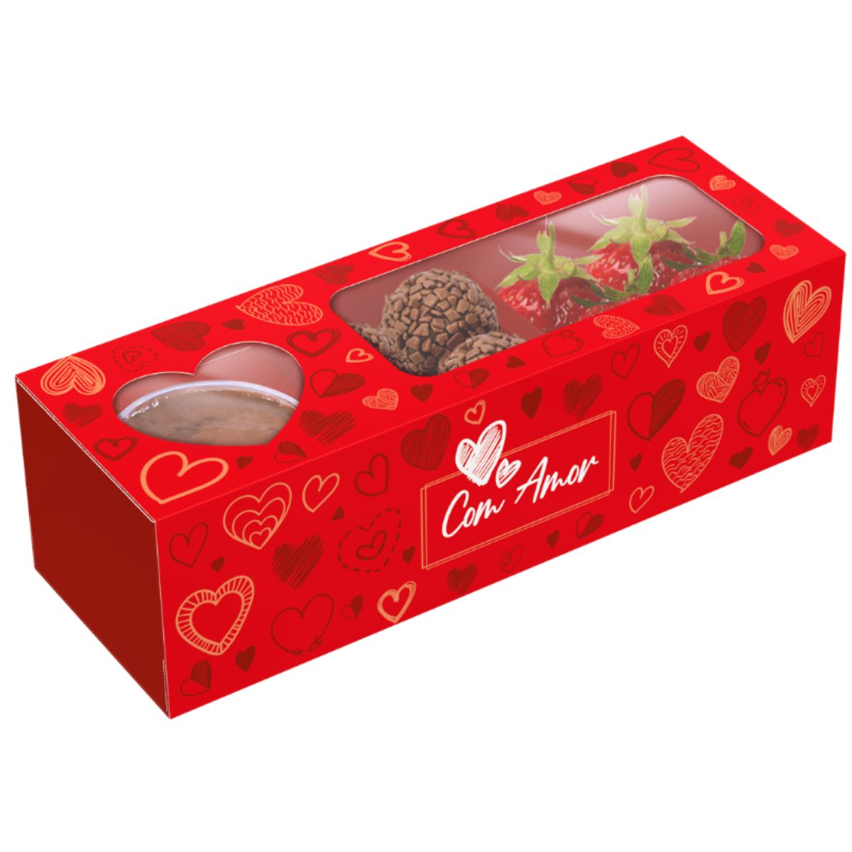 O Kit com 10 Caixas Fondue Retangular Amor em Caixa – Ideia é perfeito para montar presentes criativos e românticos. Desenvolvida especialmente para fondue, a caixa possui espaço para acomodar um potinho redondo com chocolate derretido, além de divisória interna para organizar acompanhamentos.