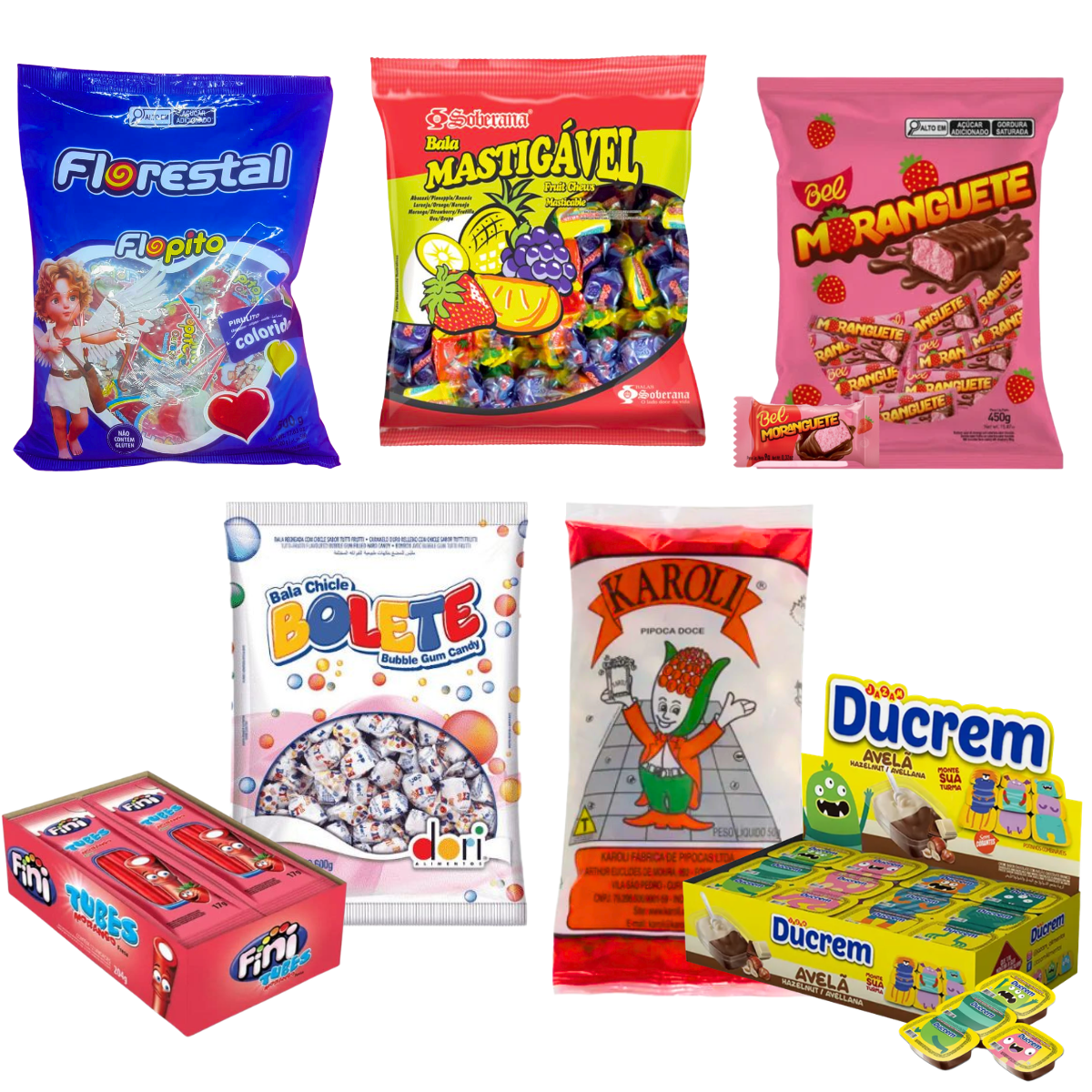 Com variedade de doces, você monta lembrancinhas bonitas, saborosas e que agradam diferentes gostos — sem perder tempo comprando item por item. Praticidade, economia e diversão em um único kit!