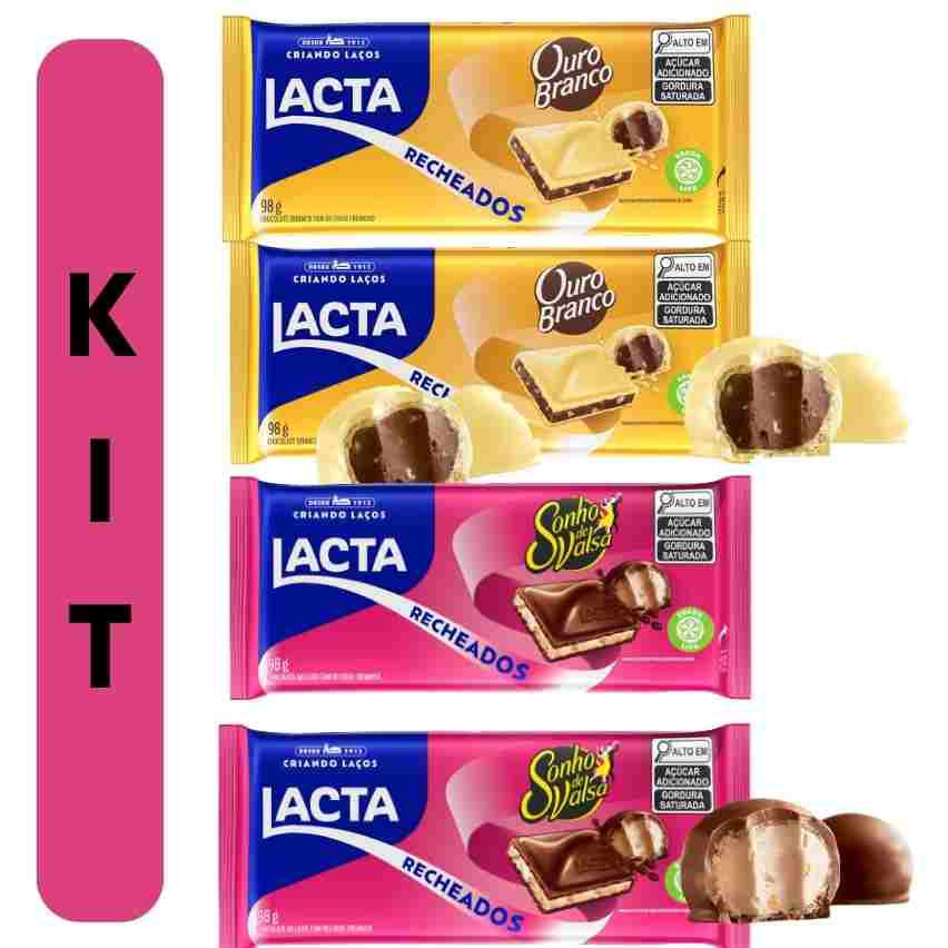 Kit: 2 Barras de Ouro Branco 98g + 2 Barras de Sonho de Valsa 98g